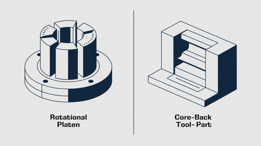 | Feature | Rotational Platen Tooling | Core-Back (Sliding Core) Tooling |